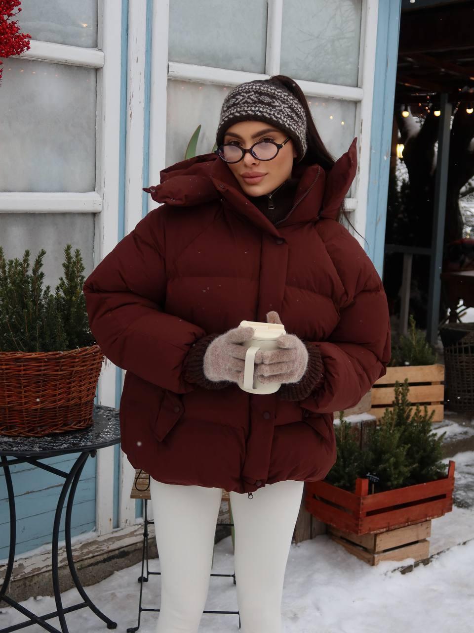 • Minimalistliku joonega praktiline burgundia talvejope igapäevaseks kandmiseks