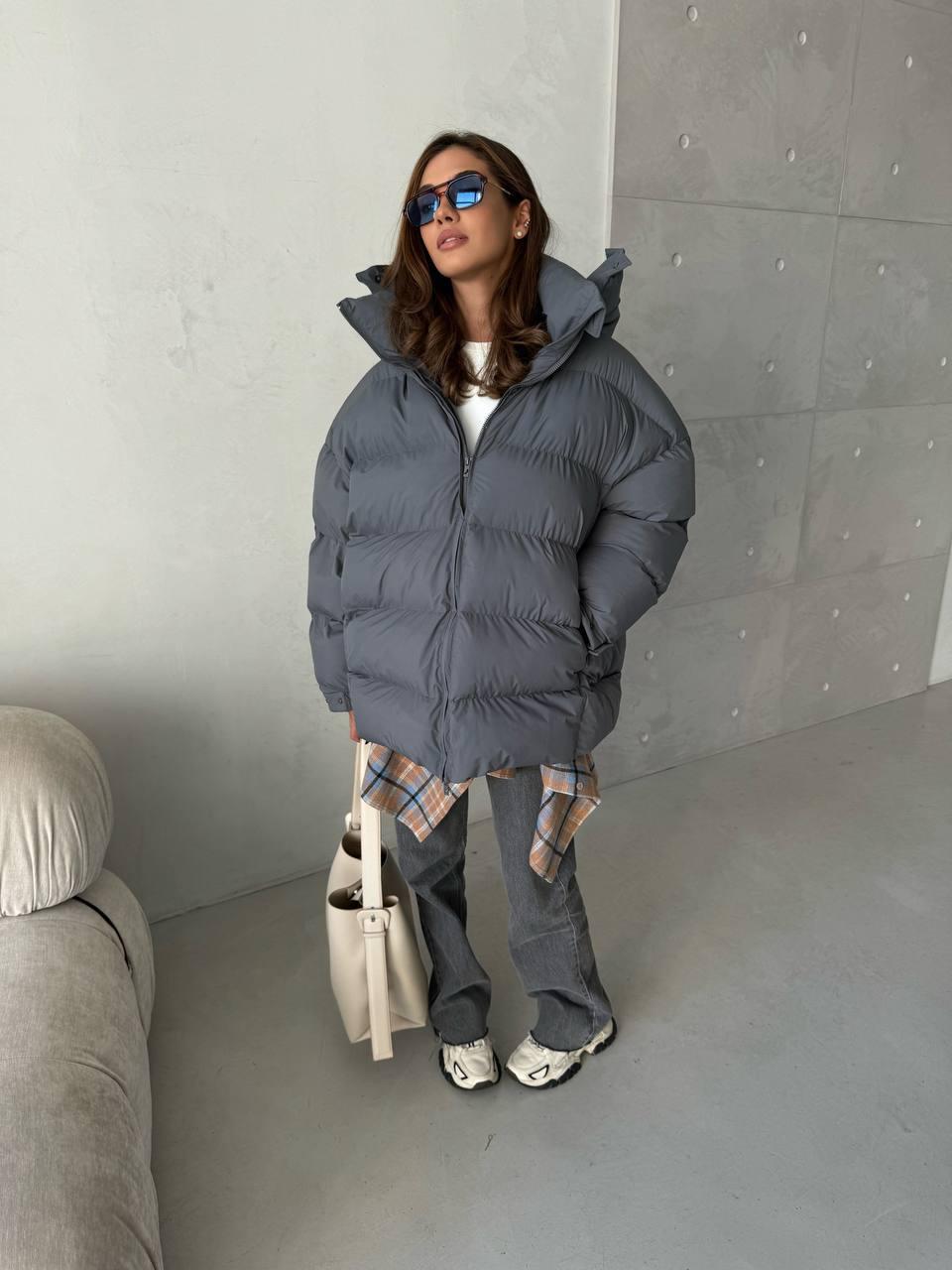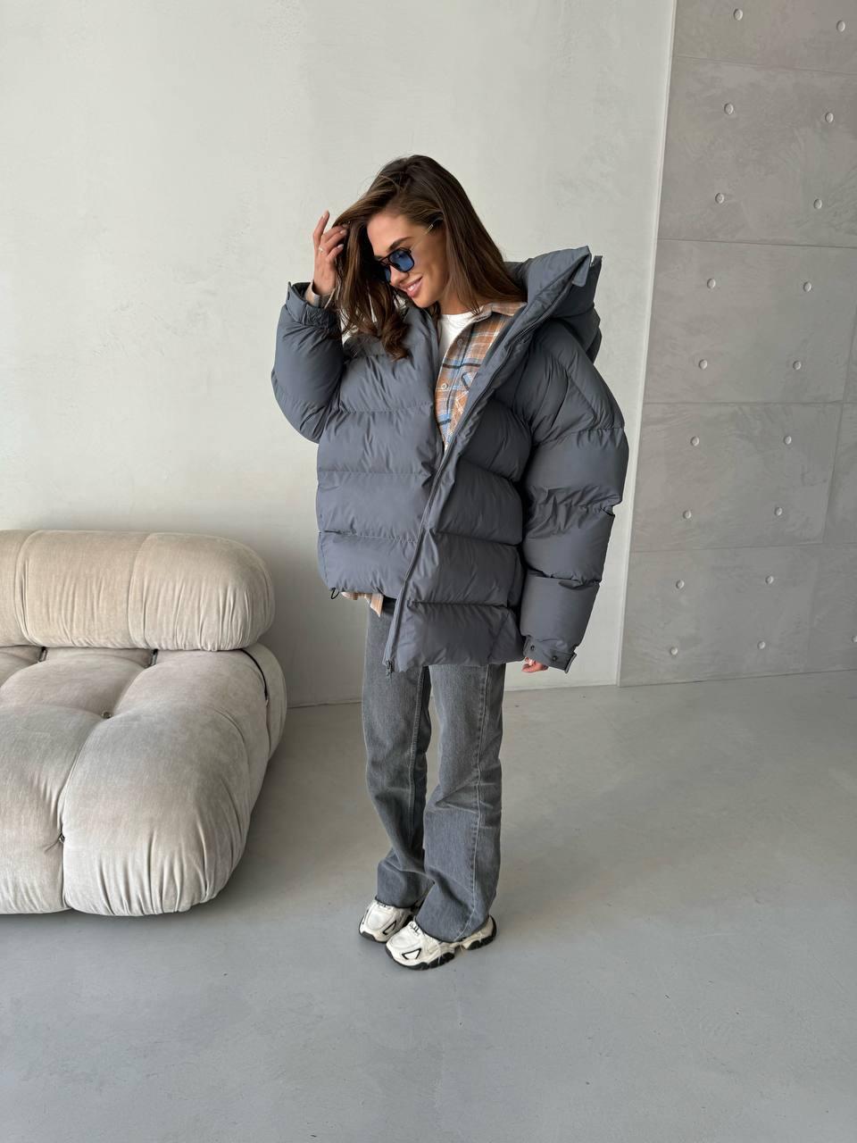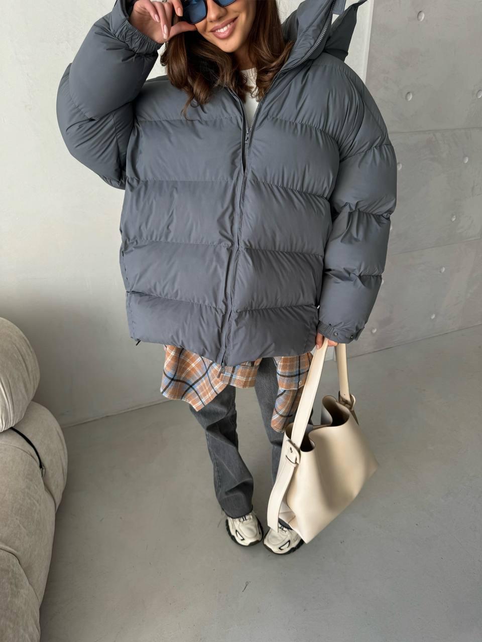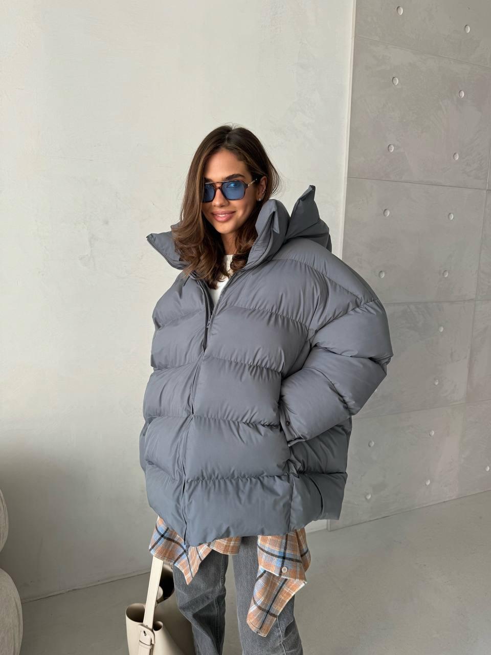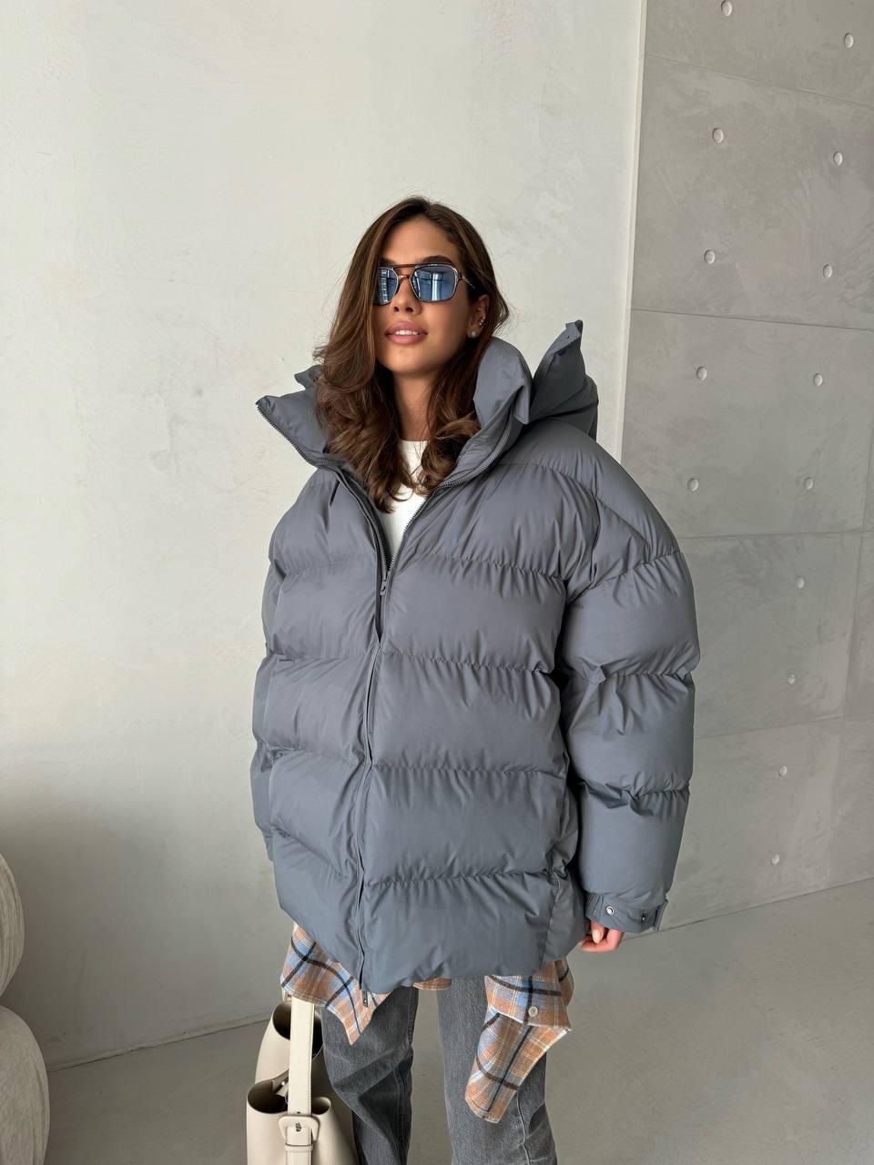 • Laia lõikega hall puffer jope
