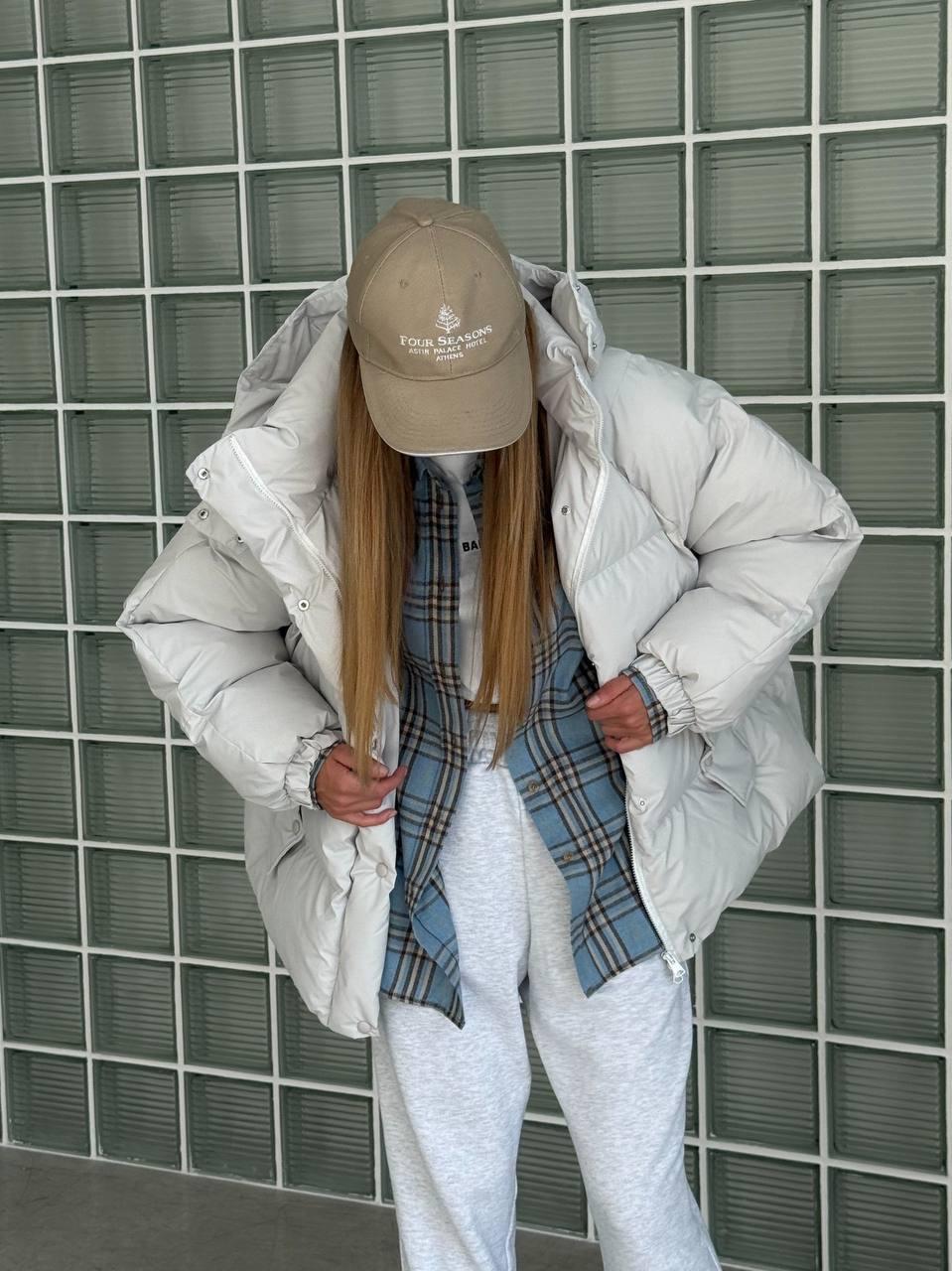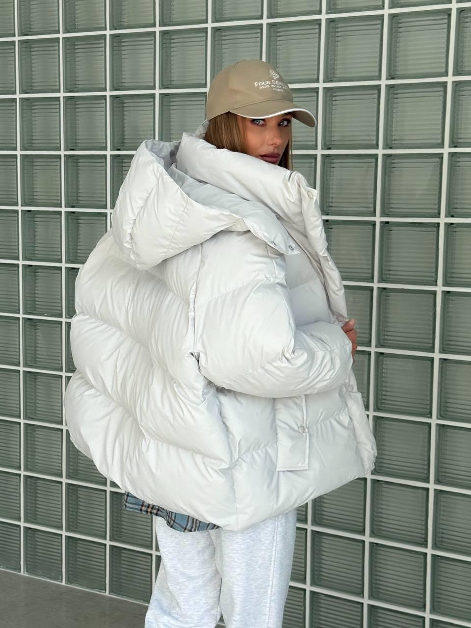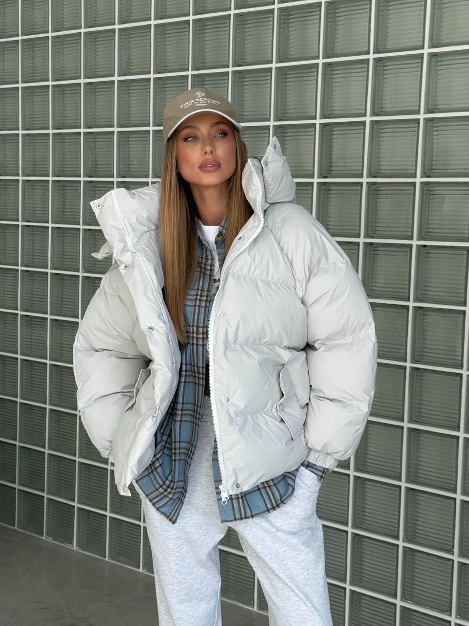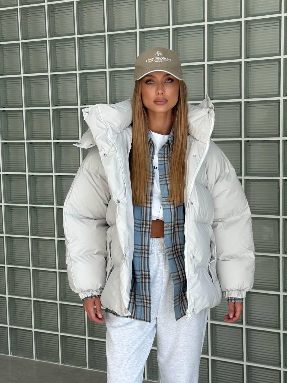 • Minimalistliku joonega praktiline valge talvejope igapäevaseks kandmiseks